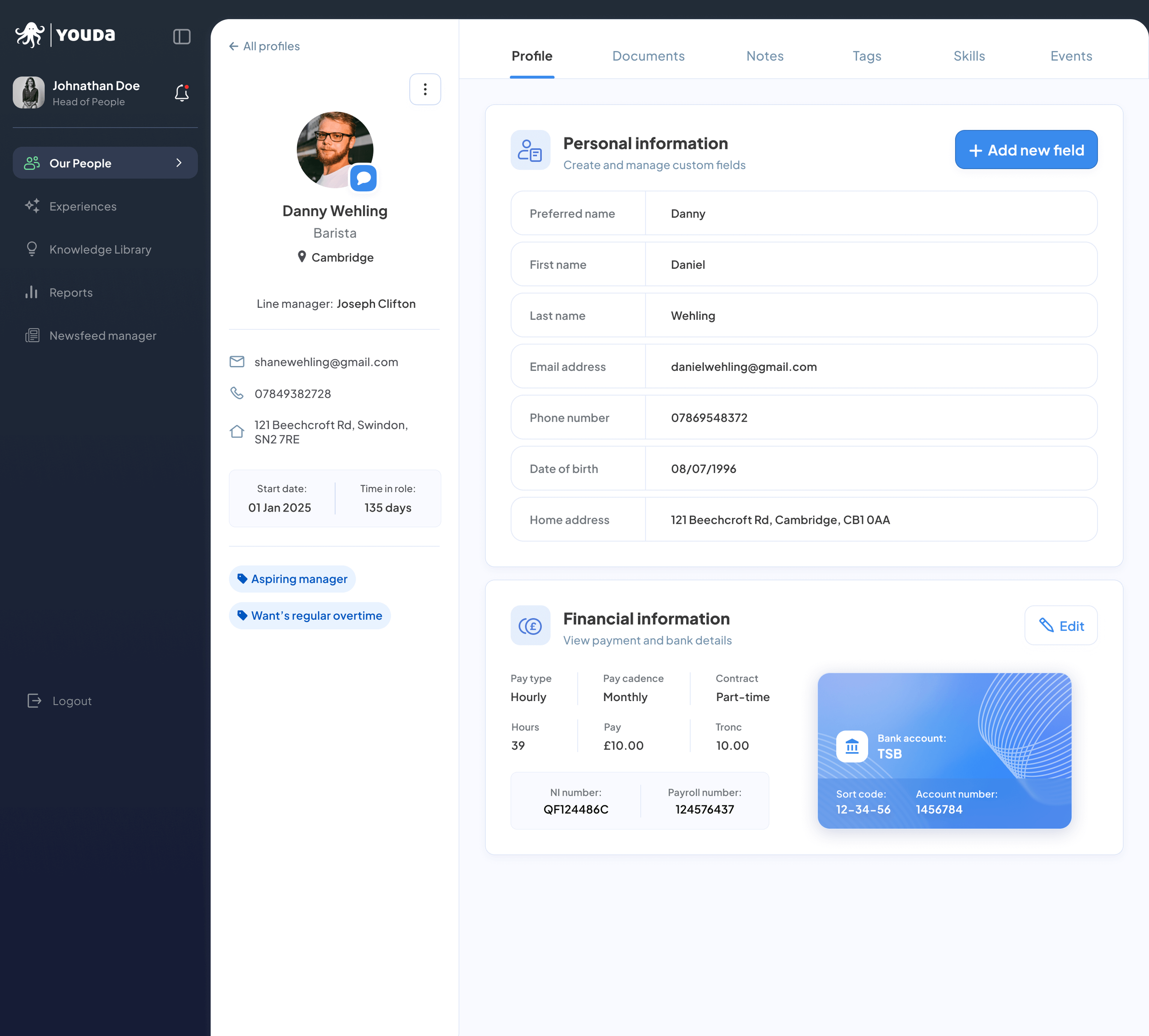 The People Team needed a clear, efficient way to manage employee profiles. After speaking directly with the client, I identified the most critical information to show and prioritised a clean, at-a-glance layout.